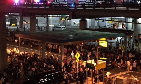 Полиция эвакуировала людей из здания аэропорта и с прилежащей территории. Около аэропорта перекрыли движение для автомобилей. Самолеты, которые должны были прибыть в аэропорт Кеннеди, были перенаправлены в ближайшие аэропорты.