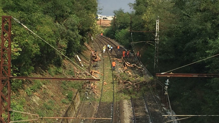 Железнодорожное сообщение между городами Ним и Монпелье временно приостановлено.