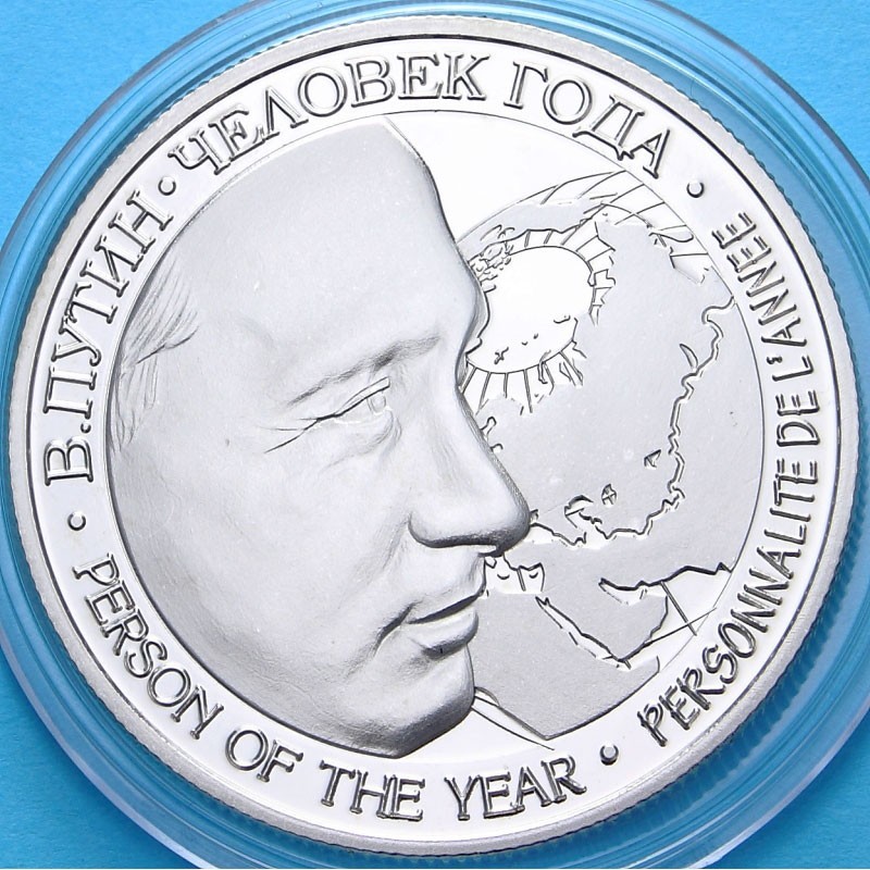 Как сообщает ассоциация «BezFormata.Ru», данные памятной монеты таковы: название – «Путин — человек года», вес — 24 г., диаметр — 38,65 мм, металл — медно-никелевый сплав, качество — UNC, тираж — 2000 штук, год чеканки — 2015. Подчеркивается, что эта монета является законным платежным средством, причем не только в Камеруне, но и во всех странах Африканского валютного союза, которые совместно эмитируют франк КФА.