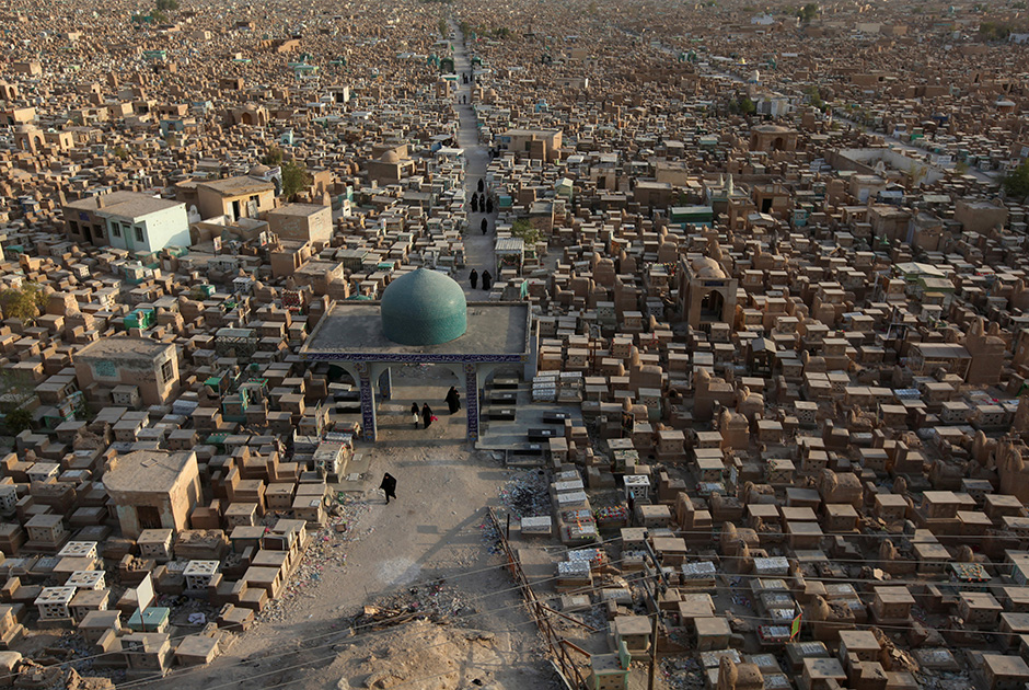 Вади ас-Салам — самое большое кладбище не только в Ираке, но и во всем мире. Ему более 1,4 тысячи лет. Быть похороненным там мечтают миллионы шиитов: на Вади ас-Салам находится могила Али, двоюродного брата и зятя пророка Мухаммеда, первого имама. По легенде, на этом гигантском кладбище бывают чудеса: людям является Скрытый Имам, который рано или поздно вернется, чтобы справедливо править миром. Ежедневно там хоронят сотни человек — солдат и мирных жителей, жертв войны, которая продолжается уже 13 лет. Источник