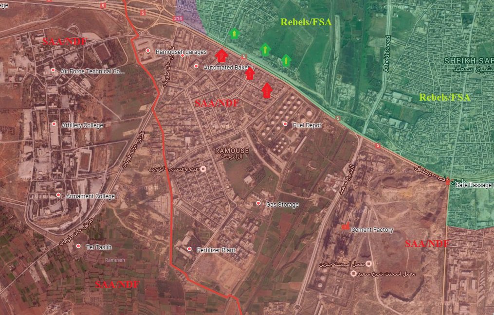 Сегодня САА зачистила от боевиков квартал Рамусех, ликвидировав еще одно последствия прорыва боевиков 6-7 августа. После падения артиллерийской базы, оборона боевиков значительно ослабла, в том числе и с точки зрения падения морального духа обороняющихся.
