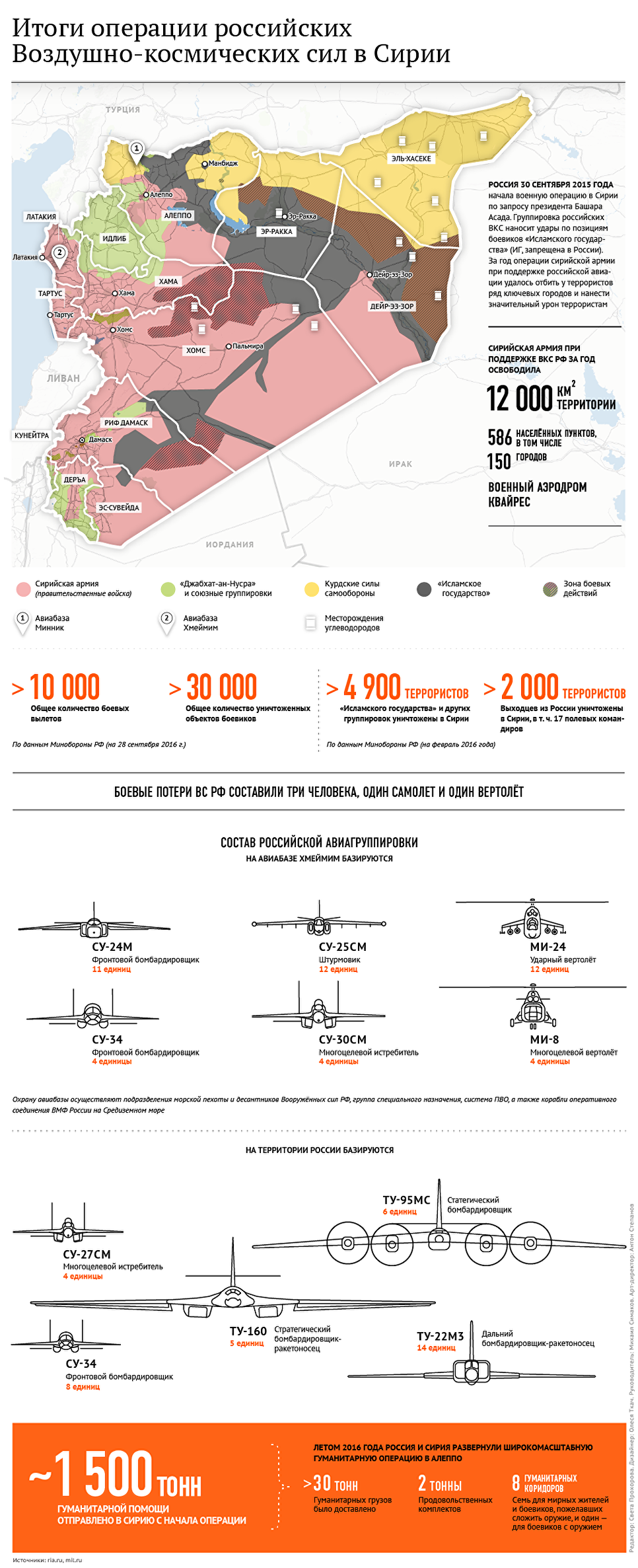 "На этом фронте успехи России измеряются не причитаниями с трибун, а реалиями на сирийской земле: сотнями вернувшихся к миру населенных пунктов, десятками тысяч освобожденных от террористов квадратных километров и тысячами тонн гуманитарной помощи населению", — подчеркнул он.