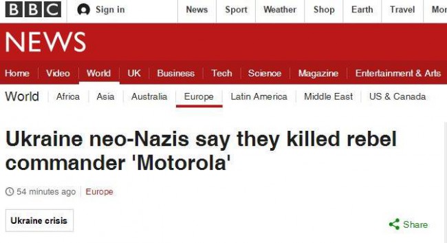 Это уже не совпадение, и даже не забавная смена заголовков про Моторолу на BBC (они написали "украинские нео-нацисты сообщили об убийстве лидера ополченцев"
