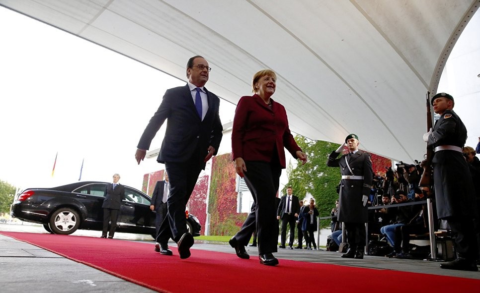 Канцлер Германии Ангела Меркель и президент Франции Франсуа Олланд перед встречей в Берлине