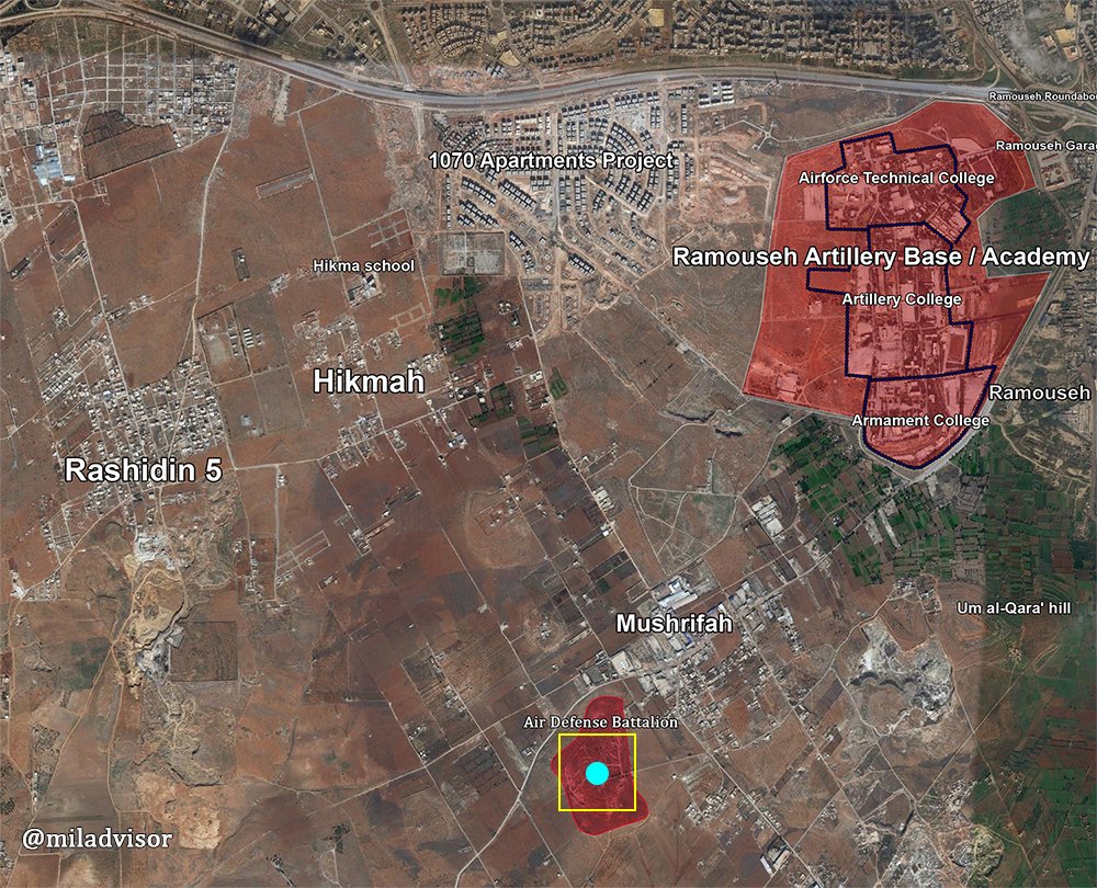 Для полного комфорта в этом вопросе, необходимо освободить школу Хикма, Рашидин 4 и Рашидин 5, застройку 1070, а так же Хан-Туман, выступающий в роли своеобразного хаба, где накапливаются боевики подходящие к Алеппо с юго-запада. Ресурсы боевиков по поводу этого наступления отмечают, что в Аль-Хадере сейчас идет накопление иранских военных и проиранских шиитских ополченцев, которые могут начать наступление на Аль-Карасси и далее на Хан-Туман.