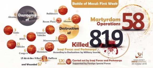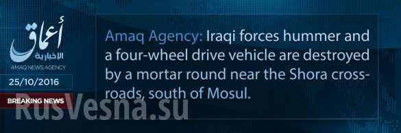 После того, как вечером 25 октября была опубликована инфографика, медиа-крыло ИГИЛ* — агентство «Аль-Амак» продолжило публиковать информацию о потерях противника, частично подтверждая свои слова фото и видео материалами.