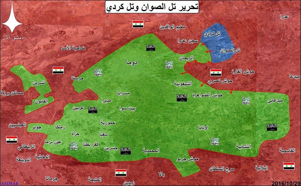 на этой карте отражена реальность Вост Гуты - Тель Курди и Тель Саван взяты САА- наступление продолжается.
