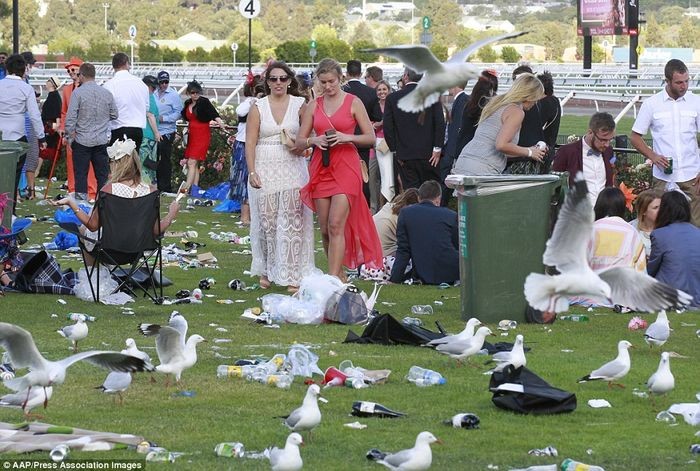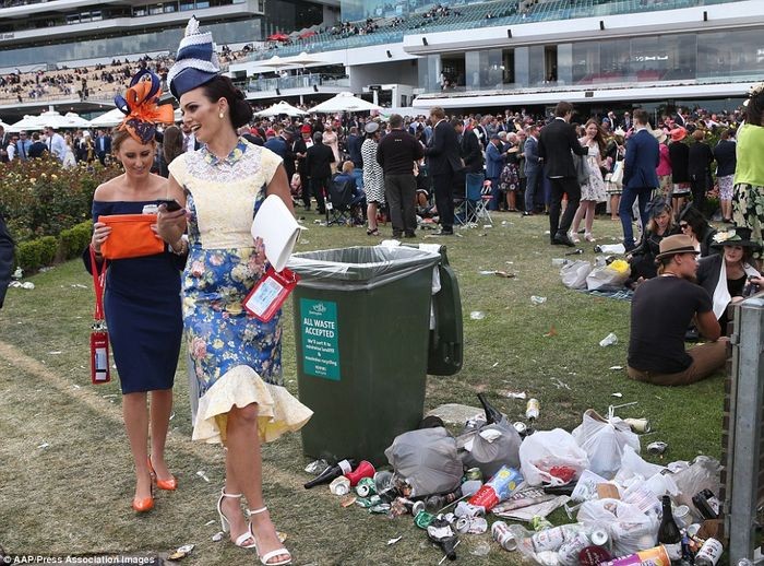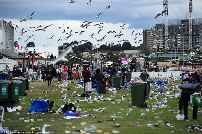 Накануне в австралийском Мельбурне состоялось престижное светское событие с полувековой историей - скачки Melbourne Cup, на которые пришли более 100 тысяч человек, сообщает Daily Mail. Однако пользователей сети по всему миру поразило поведение зрителей, устроивших попойку на традиционном мероприятии для аристократов и превративших ипподром Flemington в огромную мусорную свалку.