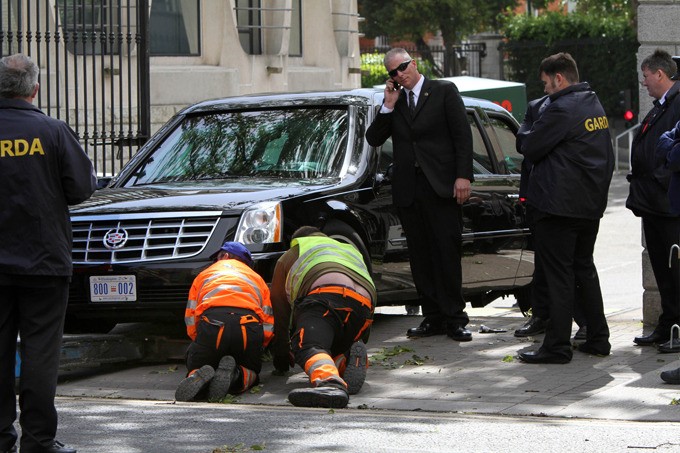 Вообще, с машинами у Барака определенно проблемы. Как-то раз, во время выезда его бронированного лимузина из американского посольства в Дублине, авто попросту застряло. Попытки выбраться из неловкой ситуации не увенчались успехом, однако Служба безопасности нашла выход – от надоедливых камер машину Обамы спрятали за микроавтобусом, что быстро перегородил ее.