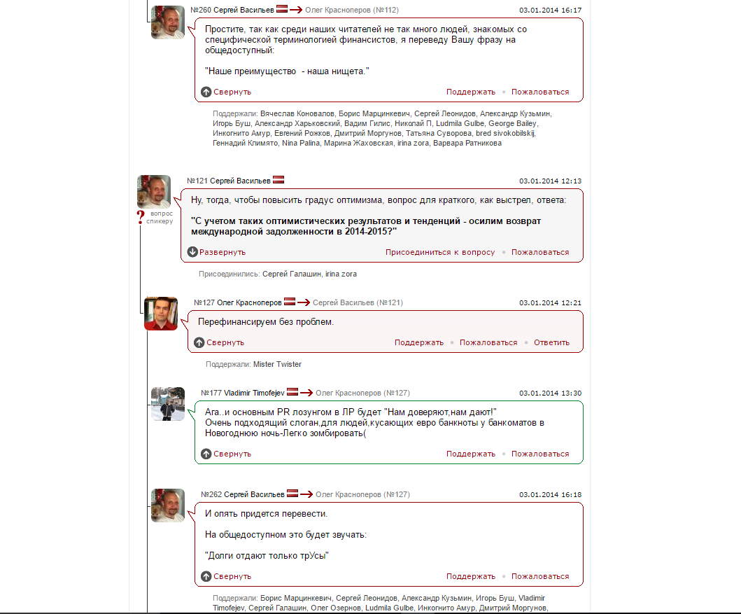 И вот в этом месте хотел бы я обратиться к дню вчерашнему и вспомнить свою дискуссию со старшим экономистом банка Латвии, которая случилась накануне революционного 2014го: