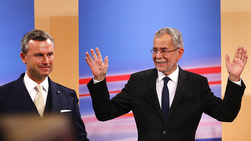 Норберт Хофер, выставивший свою кандидатуру на пост президента от правой Австрийской партии свободы (АПС), в воскресенье признал своё поражение на повторных выборах. После подсчёта более половины бюллетеней его обошёл независимый кандидат и бывший лидер зелёных Александр ван дер Беллен, который набрал 53,5% голосов.