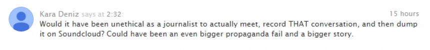 «Было бы весьма неэтично в качестве журналиста записать беседу телефонного звонка, а затем еще и выложить это на Soundcloud. В таком случае провал пропаганды был бы более ощутимым, а сама история гораздо длиннее».
