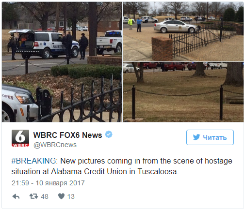 Неизвестный захватил заложников в кредитном кооперативе (вид банковского учреждения) в городе Таскалуса, штат Алабама, сообщает Fox News.