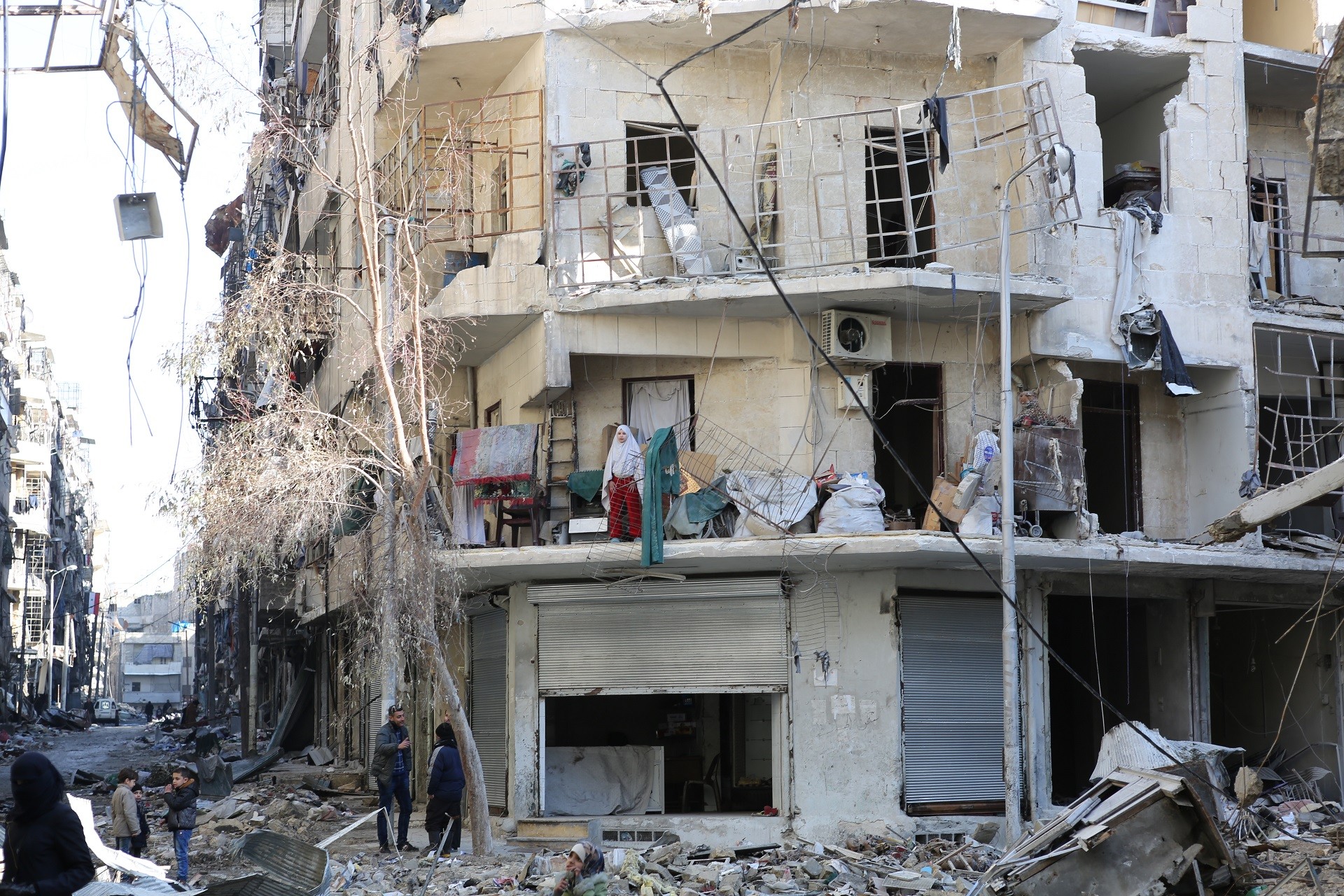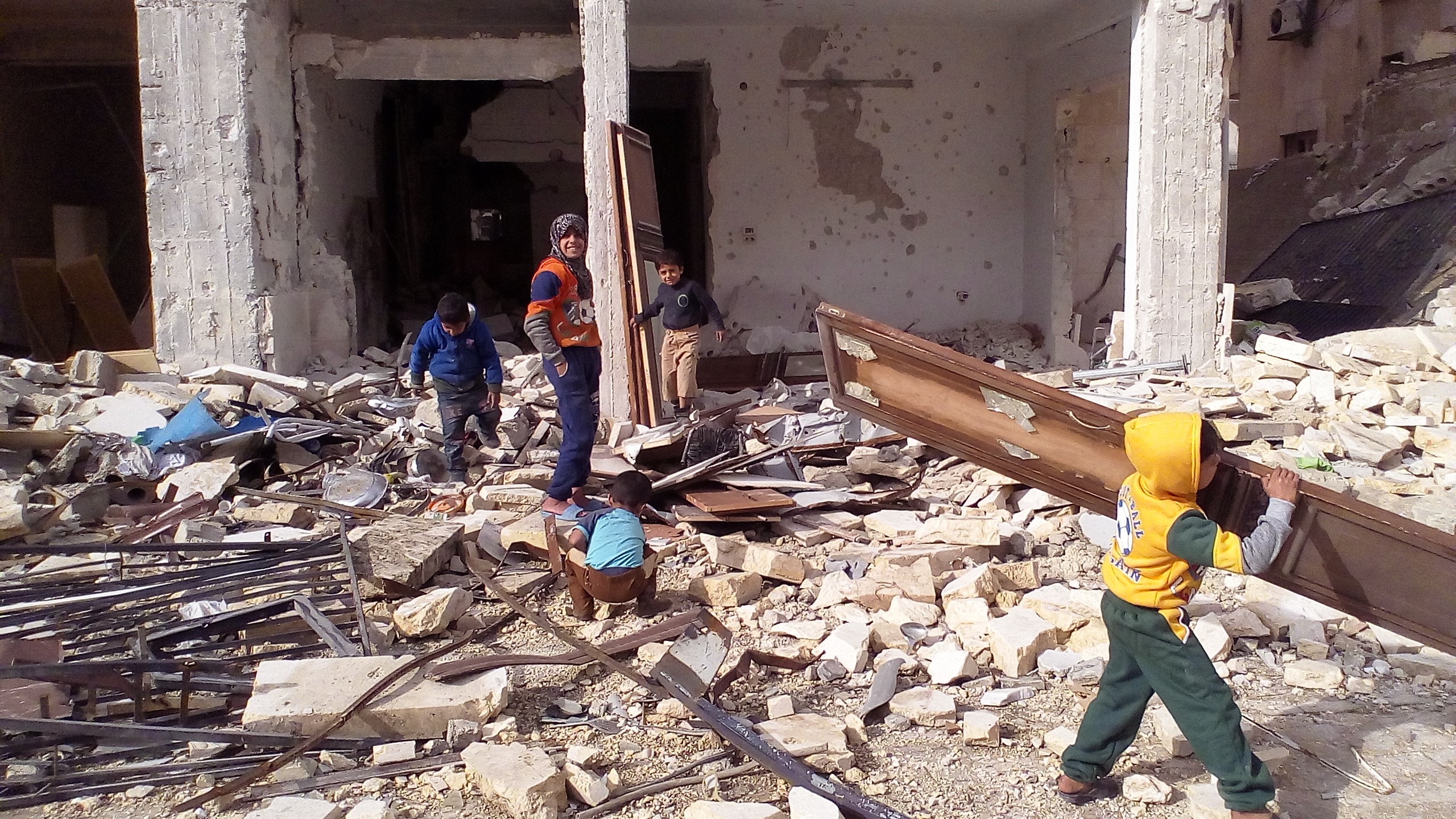 За годы войны большая часть Халеба, который до 2011 года являлся промышленным центром Сирии, превратилась в руины. Фабрики, заводы и другие производственные предприятия были разграблены бандформированиями, а жилые кварталы оказались непригодными для жизни.