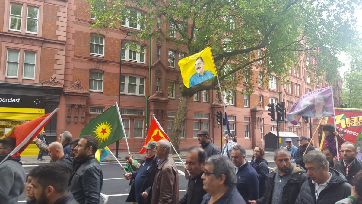 Помимо первомайских лозунгов, засветились Сталин, Ленин, Оджалан, Уго Чавес, а так же лозунги в поддержку Венесуэлы, Сирии, курдов и палестинцев.