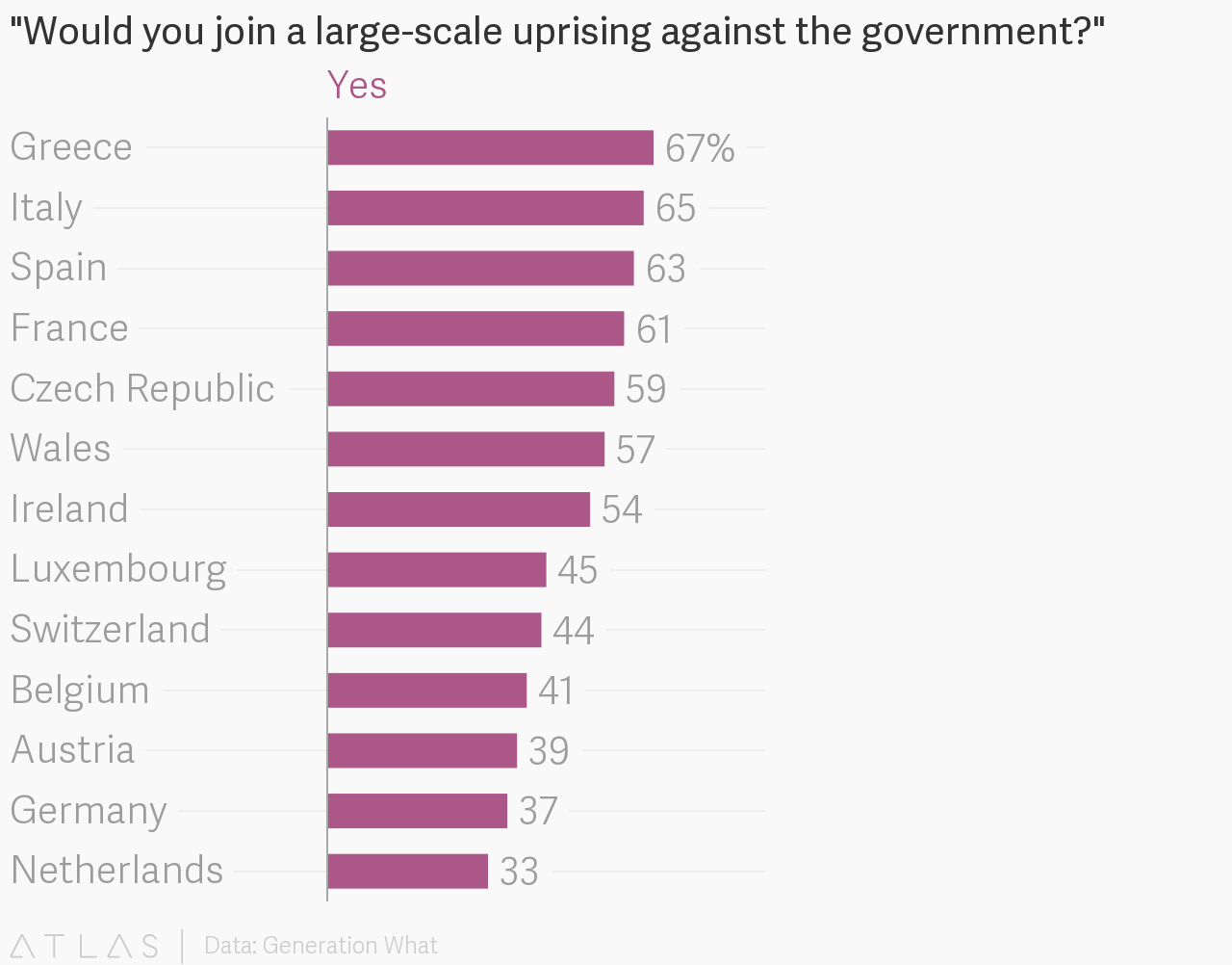 Вот совершенно дикие результаты опроса, проведенного властями ЕС, чтобы "лучше узнать следующее поколение" среди молодежи (18-34 лет), опрошено 580 тысяч человек из 13 стран. Согласитесь, широкий охват и возраст "до 34-х" - это уже сертезно. Это не пубертатного периода бюзики.