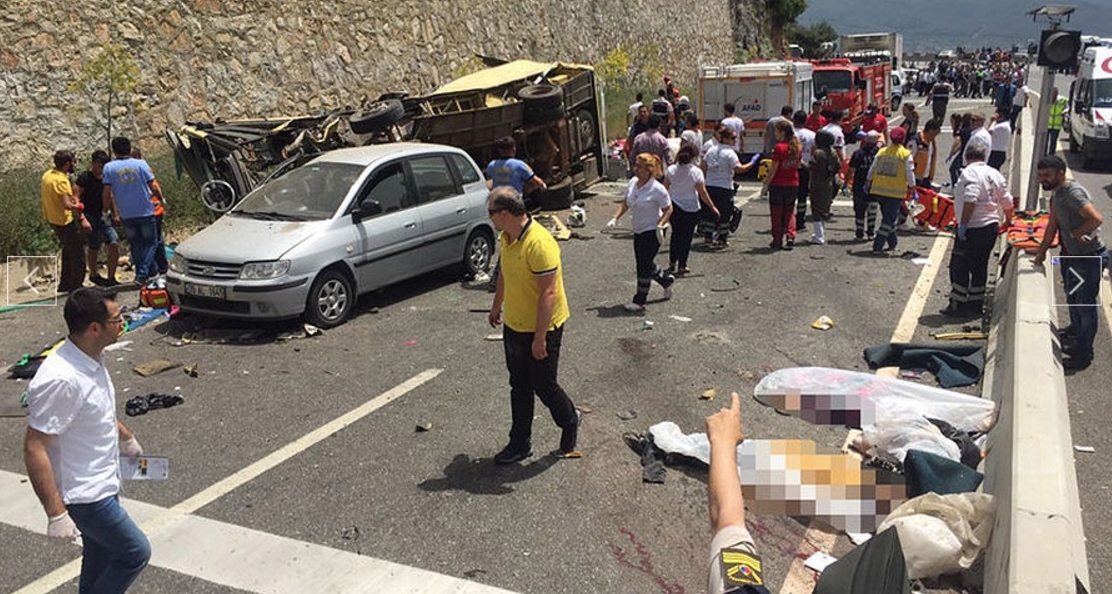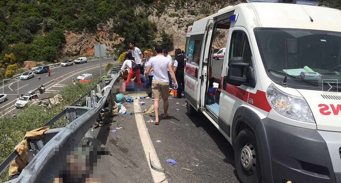 В настоящий момент движение на трассе Мугла — Анталья парализовано в обе стороны, а спасатели совместно с дорожными службами устраняют последствия страшной аварии.