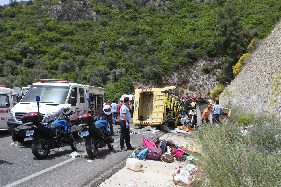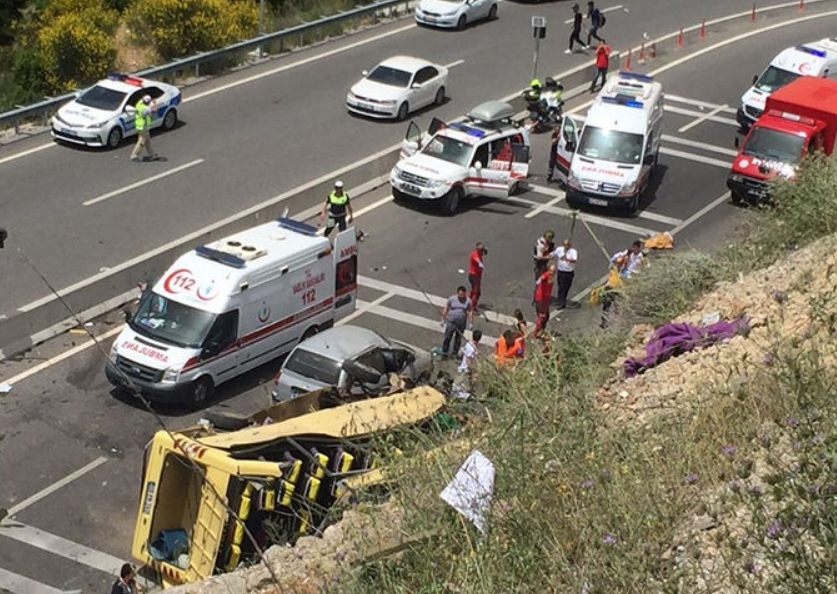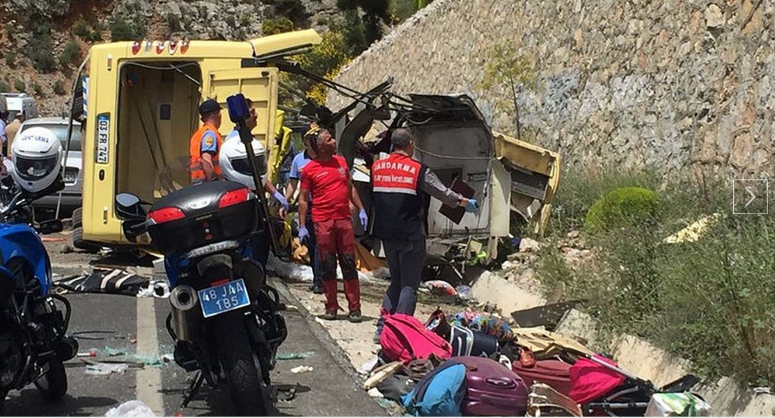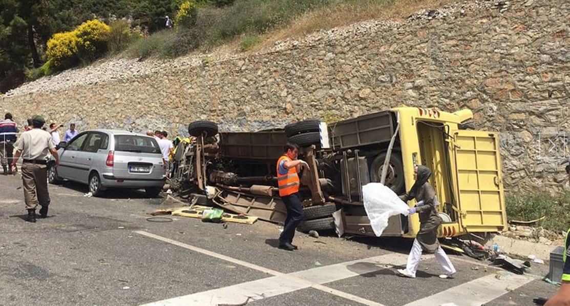 По не установленным пока причинам пассажирский автобус потерял управление и упал с обрыва на другую дорогу, водитель погиб. Согласно информации телеканала, в автобусе находились туристы из турецкого города Буджа, которые ехали на короткую экскурсию в Мармарис. Губернатор провинции Мугла сообщил, что среди погибших нет иностранцев.
