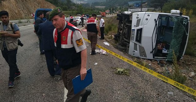 В Турции перевернулся микроавтобус с туристами, сообщает газета Hurriet Daily News.