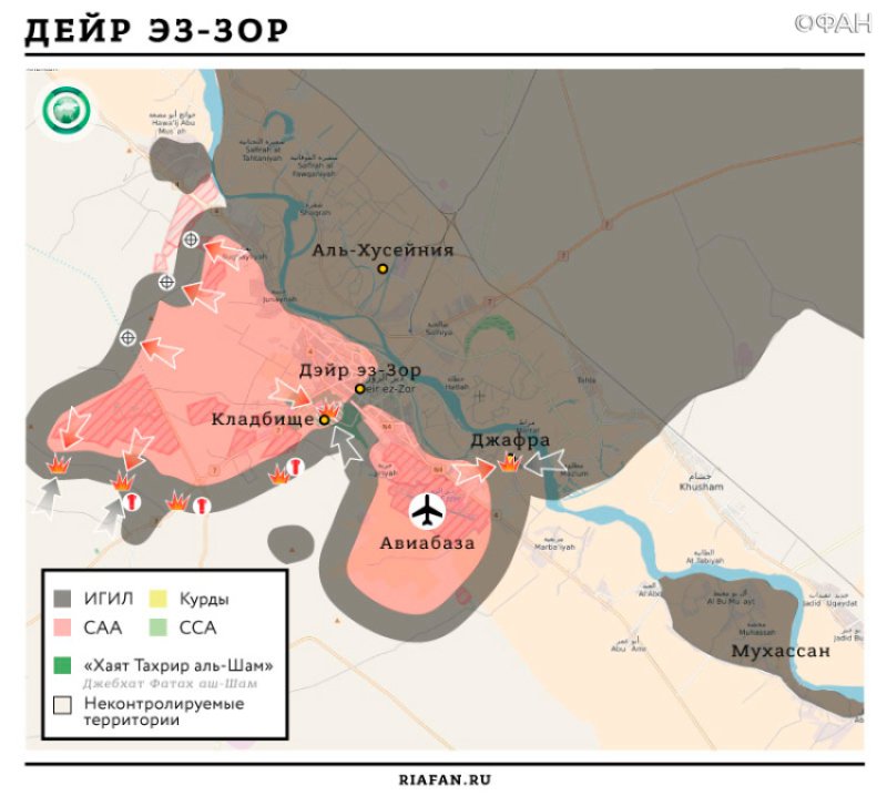 В последние дни силы ИГИЛ заметно активизировали действия в окрестностях Дейр эз-Зора, рассчитывая как можно быстрее занять всю территорию города. Командование террористической группировки намерено разместить в этом районе отряды, покидающие Мосул, почти освобожденный армией Ирака, и Ракку, с трех сторон окруженную курдами.