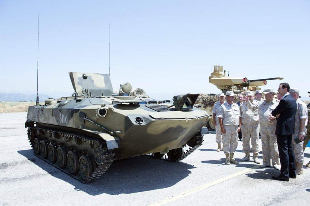 Во время короткой экскурсии по российской авиабазе Асад ознакомился с российским истребителем Су-35, а также другими современными образцами вооружения.