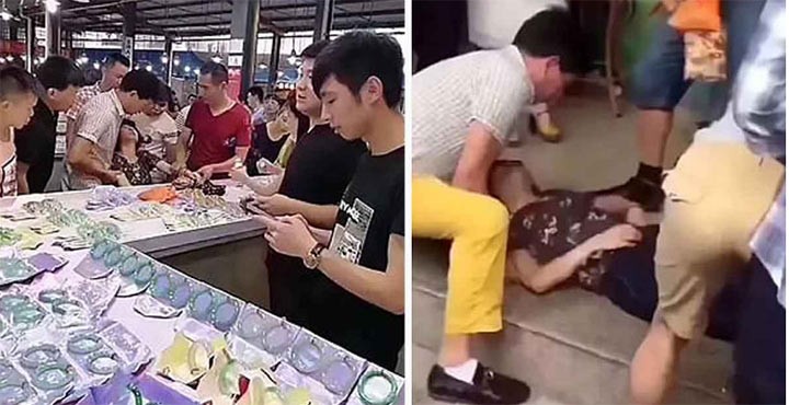 Как например, в этом случае – туристка в Китае случайно разбила нефритовый браслет и потеряла сознание, когда ей показали цену, которую ей придется за него заплатить. Женщина посещала рынок нефрита в городе Руили, провинции Юннань.