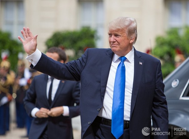 Президент США Дональд Трамп перед началом встречи с президентом Франции Эммануэлем Макроном в Париже. 13 июля 2017