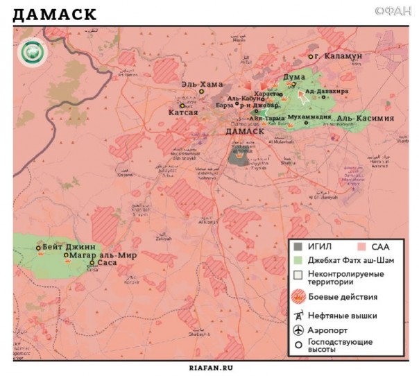 Сирия, 24 июля. ВС России прибыли в Восточную Гуту для развертывания контрольных и наблюдательных пунктов, в Хомсе силами САА уничтожен командный центр ИГ*, курды не дают жителям Ракки вернуться в свои дома. Об этом сообщает военный источник Федерального агентства новостей (ФАН) в Сирии Ахмад Марзук (Ahmad Marzouq).