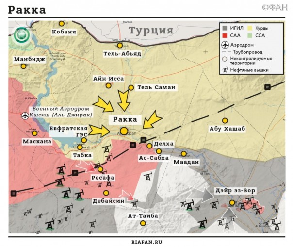 По данным курдских источников, СДС продолжили наступление в городе Ракка, отбили атаку ИГИЛ, уничтожив 35 террористов, и заняли большую часть района Хишам Ибн Абдульмалик. Возможно, одной из причин предполагаемого соглашения СДС с САА могли стать некоторые трудности, с которыми СДС столкнулись в ходе битвы за Ракку.