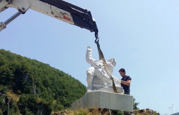 Статуя будет установлена в разбитом два года назад на берегу озера и под мостом, соединяющем два его берега, Парке чести и бесчестия. В части парка, посвященной чести, уже установлено несколько монументов, среди которых памятник погибшему в Ираке в 2004 году итальянцу Фабрицио Куаттрокки. Бесчестие же олицетворяет карикатурная статуя капитана Франческо Скеттино, по чьей вине в 2012 году затонул круизный лайнер Costa Concordia.
