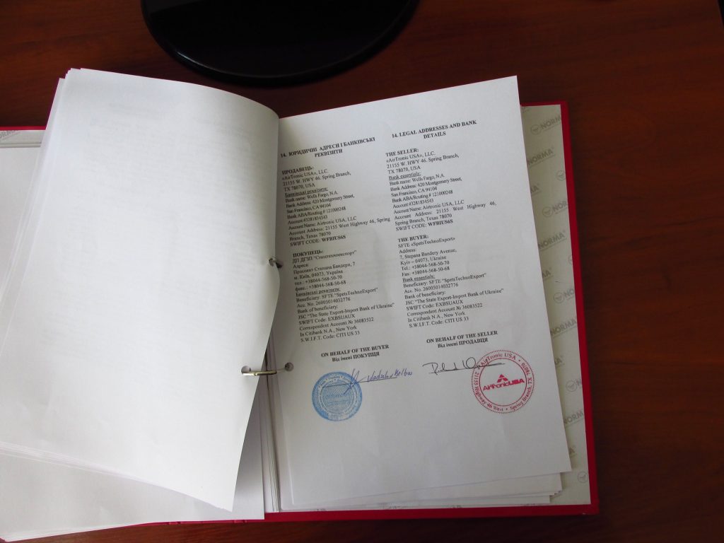 SF получила эксклюзивную информацию подтвержденную фотографиями контракта между украинской государственной компанией «Спецтехноэкспорт» и американской компанией AirTronic USA о поставке летального оружия в Украину.