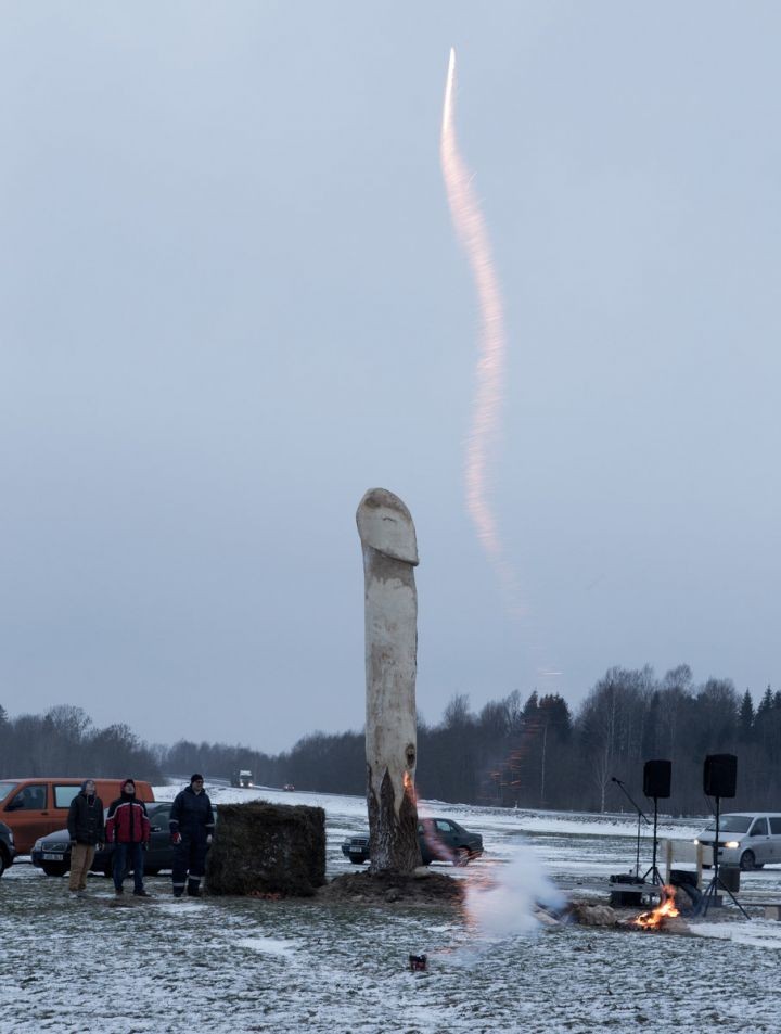 В эстонском городе Вильянди при небольшом скоплении народа в четверг был открыт "Монумент благих намерений". Всё бы ничего, но, когда со статуи был сдёрнут брезент, перед изумлёнными горожанами предстало нечто, напоминающее большой деревянный [вырезано тоталитаризмом].