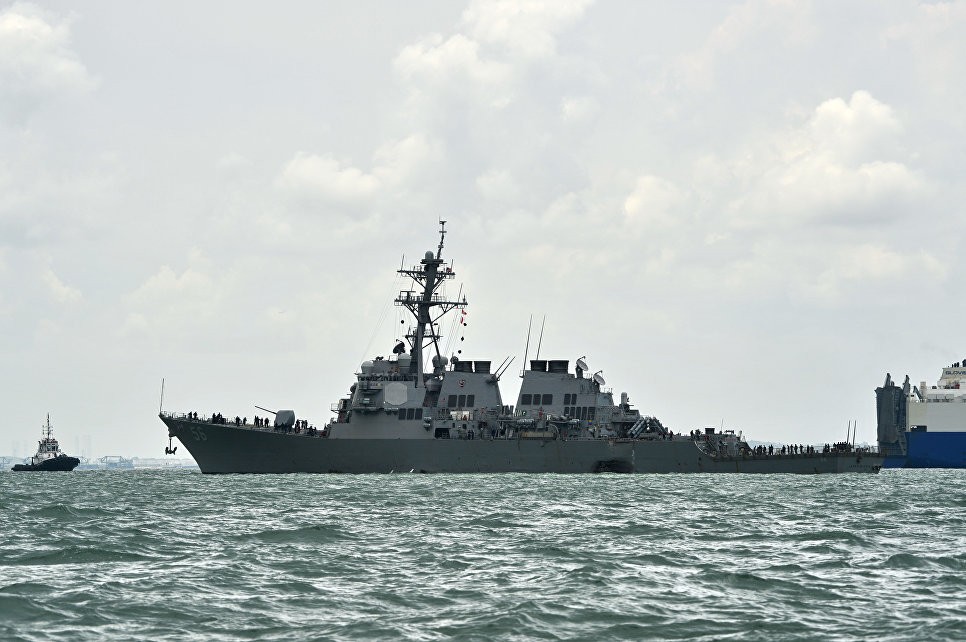 Ракетный эсминец ВМС США "Джон Маккейн" столкнулся с торговым судном в районе Малаккского пролива, сообщил в воскресенье американский 7-й флот.