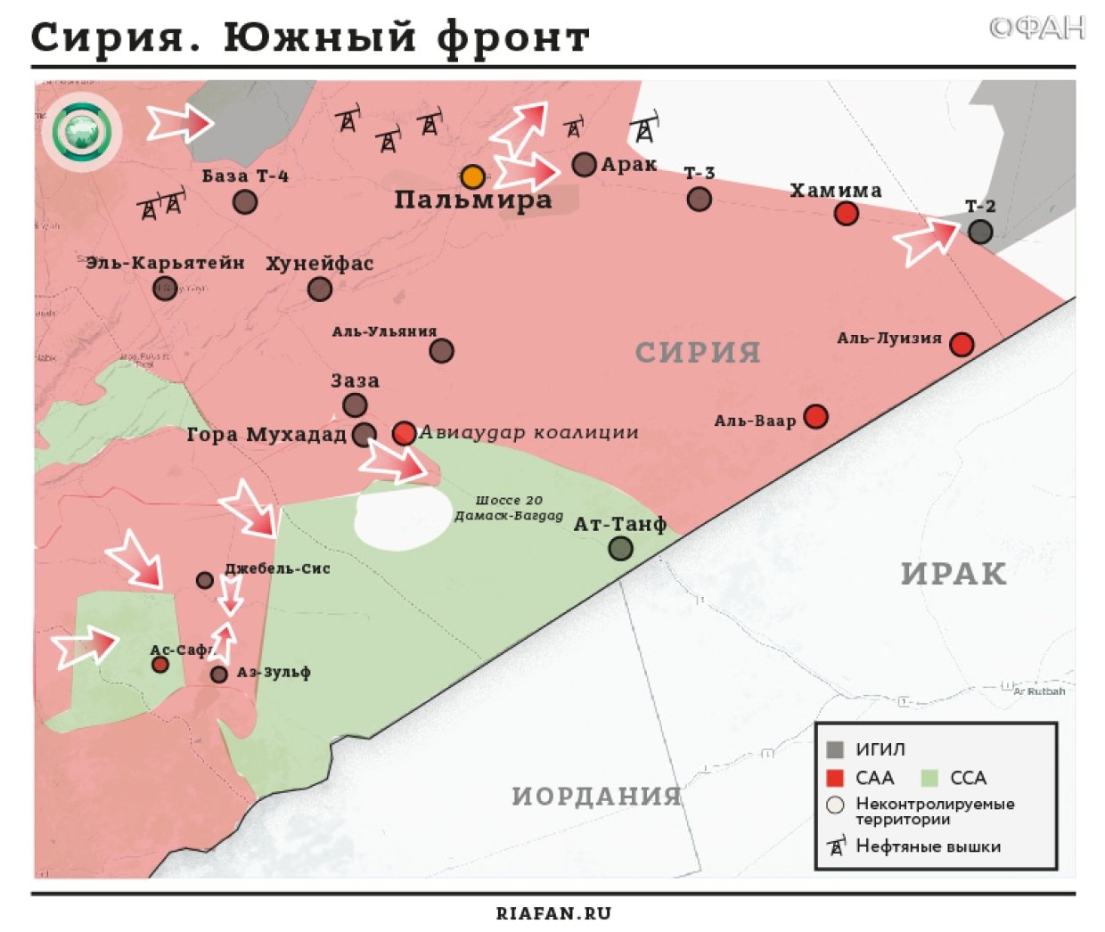 В центральной Сирии САА и ее союзники отбили у ИГИЛ всю территорию к северу от Пальмиры, освободив, таким образом, от группировки террористов порядка 2 тыс. кв. км.