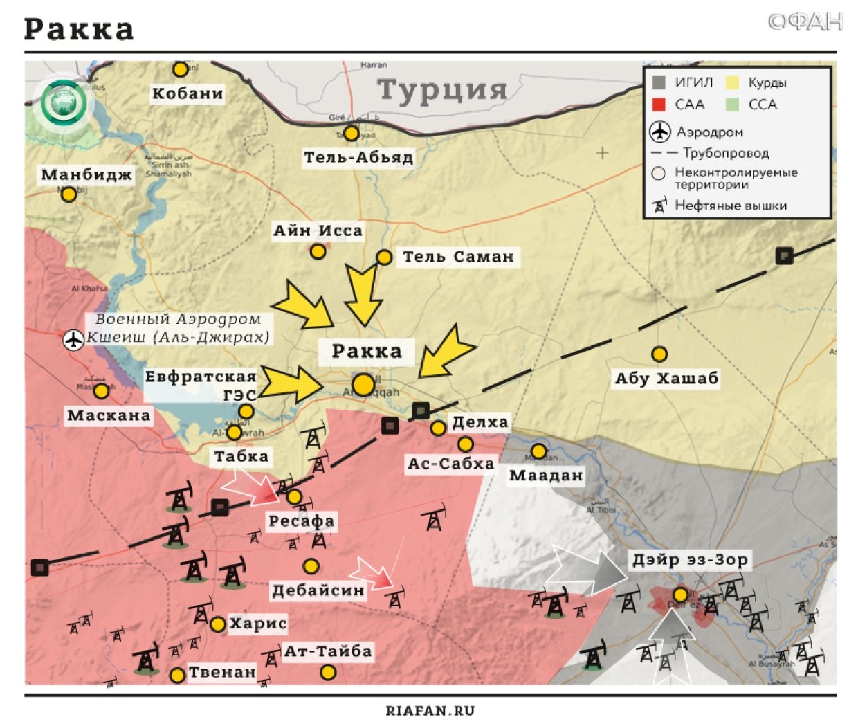 Командование Демократических сил Сирии (SDF) и курдских Отрядов народной самообороны (YPG) сообщило о подготовке своих бойцов к наступлению на новую неофициальную столицу «Халифата», город Дейр эз-Зор. Заявление курдских военачальников опубликовал местный источник в Facebook (@Rodi.kurdi2004).