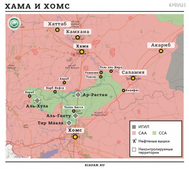 На севере провинции Хомс продолжаются взаимные перестрелки правительственных войск и боевиков радикальной оппозиции. Местный источник в Facebook (@Agency.news.Haq) зафиксировал военные действия в районе города Тальдо. Также по сведениям информационного агентства HAQ News артиллерия Сирийской арабской армии (САА) ведет артиллерийский обстрел позиций антиправительственных группировок в окрестностях населенного пункта Кафр Лаха.