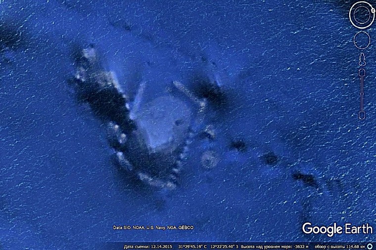 Я тоже находил что-то подобное в морях, но В ЛАИ меня раскритиковали. То, что мы видим на картах гугл в море, совсем не то, что нам кажется. Там на форуме даже специально оговаривается, не ссылаться на такие источники.