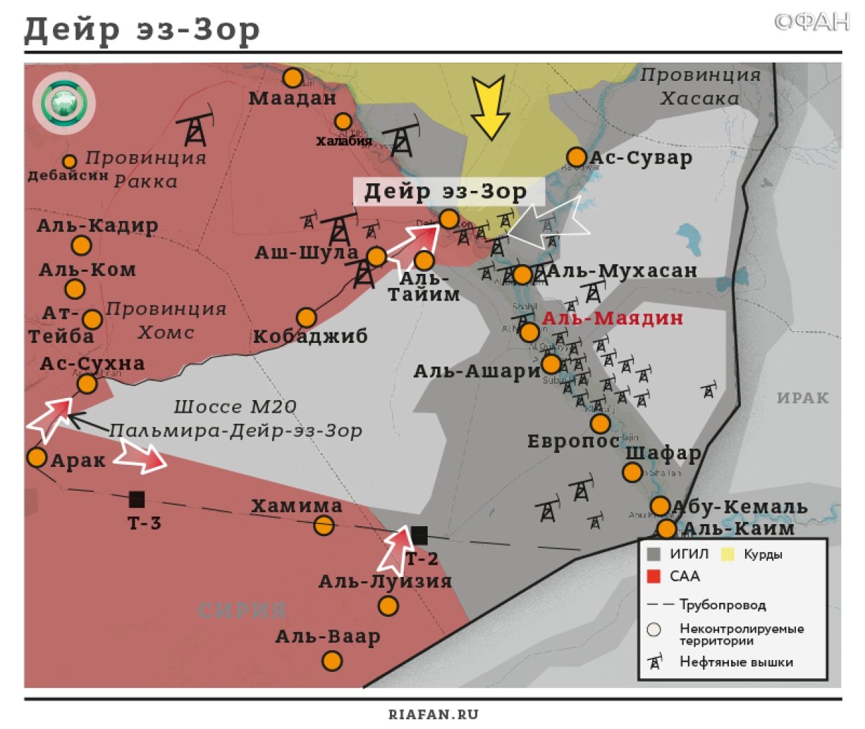В настоящий момент САА и ее союзники перебрасывают подкрепления в провинцию Дейр-эз-Зор и готовятся к ожидаемому броску в направлении к границе с Ираком.
