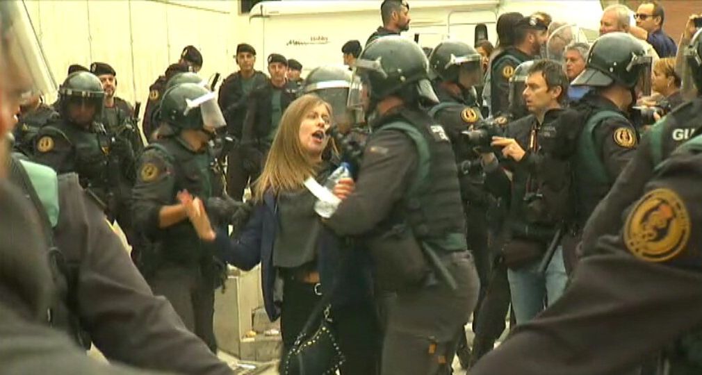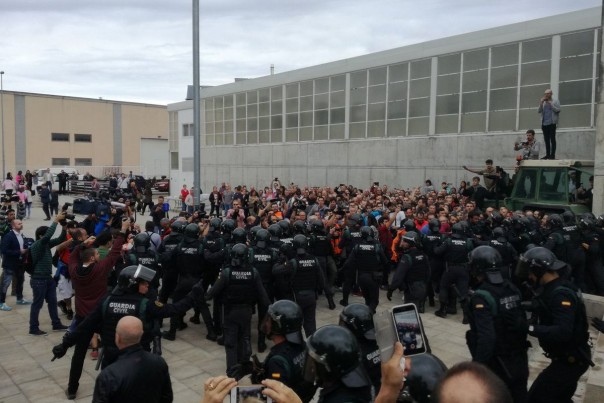 Также СМИ сообщают, что сотрудники полиции Испании начали силой освобождать школы и другие помещения, предназначенные для проведения голосования о независимости Каталонии. Сообщается о применении травматического оружия испанскими полицейскими.