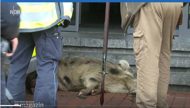 По сообщению ndr.de две диких свиньи появились в центре города Хайде (Шлезвиг-Голштейн, население около 20 тыс. человек) и вели себя крайне агрессивно. Одна из них забежала в пекарню, другая вломилась в стеклянные двери банка.