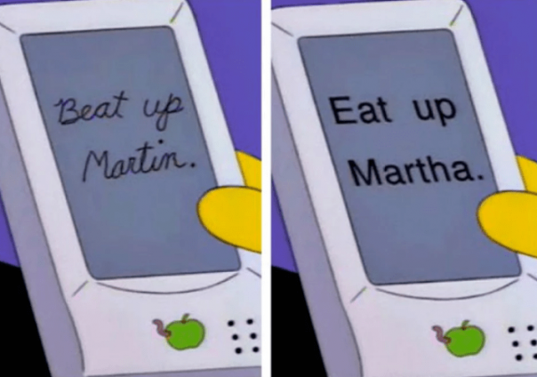 «Симпсоны» знали об этом ещё в 1994-м, когда Дольф Старбим пользовался неким устройством, подозрительно напоминающим айфон; логотип устройства был похож на яблоко, а Дольфу мешал автокорректор!