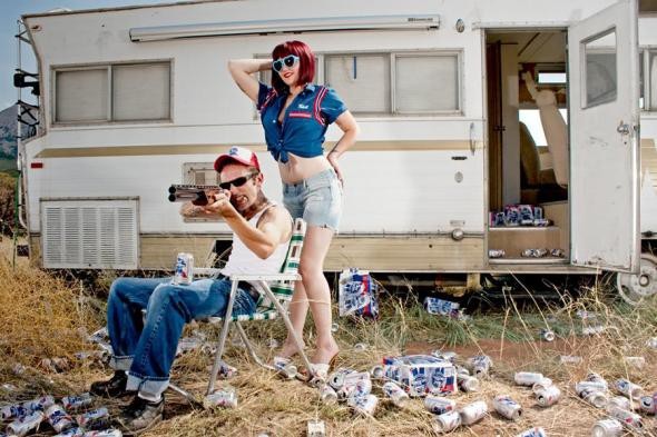 Самый распространённый образ белого мусора — это белый мужчина, который живёт в трейлере или хотя бы ездит на пикапе, имеет свое оружие, носит прическу маллет, на его теле множество татуировок, сделанных в домашних условиях дружками. Если и работает, то зарабатывает крайне мало, а полученные деньги сразу тратит на «новый телик» вместо еды детям, а чаще просто получает пособие по безработице. Развлекается посещением «деревенского клуба», где обязательно устроит драку. Среда обитания — по всей стране, но наибольшая концентрация таких людей — на юге. Отличается рьяным патриотизмом и межнациональной ненавистью.