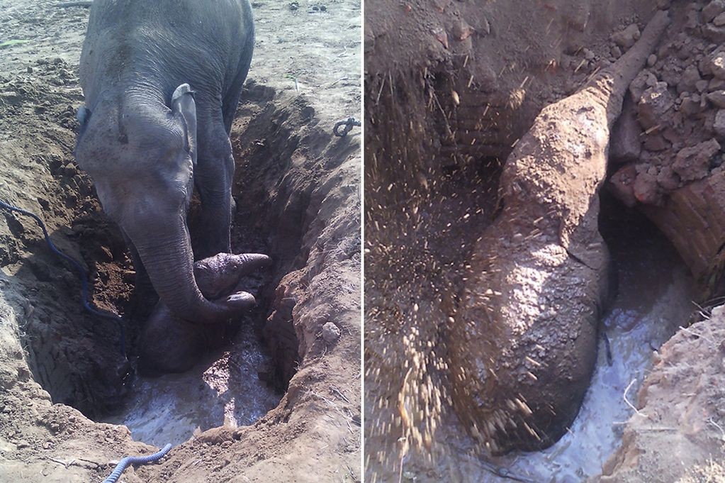 Маленький слоненок упал в старый заброшенный колодец. Слониха 11 часов рыла землю, сбивая в кровь хобот и ноги.