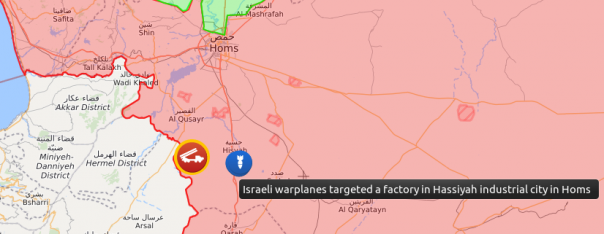 Вечером 1 ноября южнее города Хомс израильские боевые самолеты нанесли бомбовый удар по медеплавильному заводу в промзоне Хишан. По сообщениям местных источников, завод подвергся удару 7 неизвестных боеприпасов. В ответ 72я бригада войск ПВО Сирии провела пуск неустановленной ракеты класса земля-воздух по израильским боевым самолетам. Ракета взорвалась восточнее города Аль-Кусейр возле сирийско-ливанской границы. О попаданиях не сообщалось.