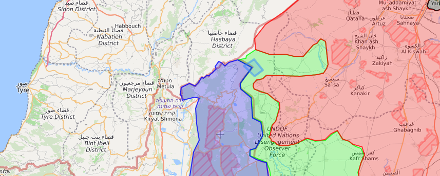 15.05. Как мы сообщали ранее, сотни друзов из Хадер, провинция Кунейтра, сотни гражданских друзов через территорию Голанских высот пытаются бежать в Израиль от активировавшихся столкновений. Так, боевики FSA через восточные окрестности города пытались пробиться к Бейт Джинн, находящемуся под их контролем, поскольку с западной стороны (Голаны) завязались столкновения с правительственными войсками. В результате взрыва смертника на заминированном автомобиле близ восточного въезда в город погибло и ранено неизвестное количество военнослужащих, столкновения продолжаются.