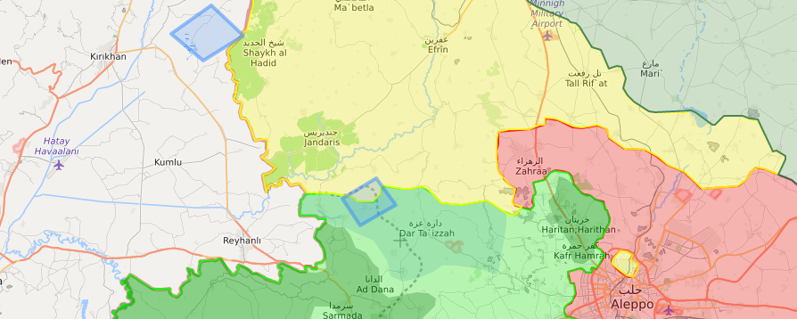 Местный источник сообщает в Twitter (@smaanaskar), что Сирийская свободная армия (ССА) ведет обстрел позиций Демократических сил Сирии (SDF) в деревне Басофан к югу от курдского города Африн. Ранее перестрелки между «свободной армией» и курдскими Отрядами народной самообороны (YPG) отмечались в районе поселения Дарат Изза на западе провинции Алеппо.