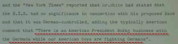 Характерно, что среди прочего, в отчете Банка Англии приводится фраза из "Нью-Йорк Таймс" о том, что "американский президент делает бизнес с Германией, пока американские парни сражаются с немцами".