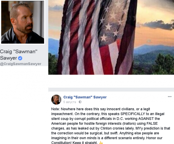 Спустя год после выборов, после того, как Трамп обставил Хиллари Клинтон, либералы все еще отчаянно хотят любой ценой отстранить нынешнего президента США от должности. Видимо, сытый по горло всем и вся, творящимся в США, бывший "морской котик" Крейг Сойер (“Sawman”) и написал свое "письмо-обращение к нации" .