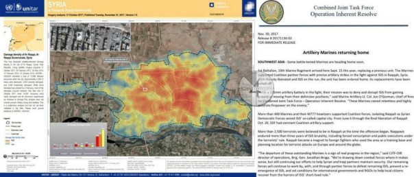 Коалиция во главе с США объявила о том, что она выводит из Сирии 1й батальон 10го полка Морской пехоты. В состав батальона входит 400 американских морпехов при поддержке гаубиц М777. Они участвовали в битве за Ракку, помогая поддерживаемым США СДС.