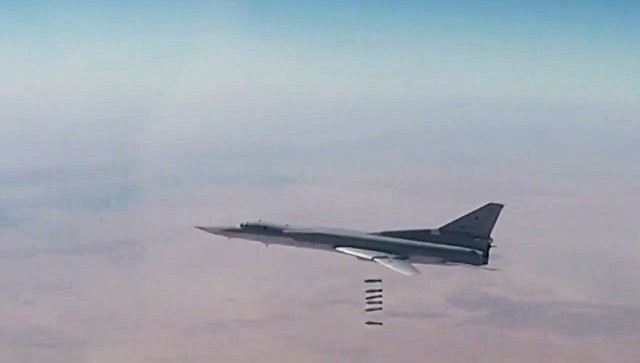 "Сегодня 6 российских дальних бомбардировщиков Ту-22М3, взлетев с аэродрома на территории Российской Федерации, нанесли групповой удар по складам вооружения и боеприпасов, опорным пунктам и скоплению террористов ИГИЛ* в районе населенного пункта Эс-Сайяль провинции Дейр-эз-Зор", — говорится в сообщении.